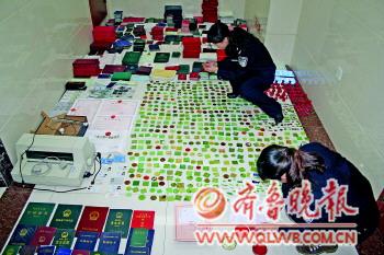 [提要] 經一個多月的縝密偵查,日前,濟南市公安局直屬支隊一舉搗毀一個制販假證窩點,當場抓獲偽造、買賣證件違法嫌疑人4人,查獲假公章、印章模板近千枚,收繳各類偽造證照、證書4000余本。