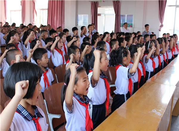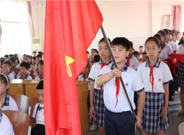 規(guī)范的入隊儀式,不僅留給隊員們美好的回憶,也讓入隊儀式融入了情感。儀式中,歌聲嘹亮,隊旗、紅領(lǐng)巾格外鮮艷,在鮮艷的隊旗下,老隊員為新隊員佩戴了紅領(lǐng)巾,全體新入隊的同學(xué)莊嚴(yán)宣誓,時刻準(zhǔn)備著為共產(chǎn)主義事業(yè)而奮斗!大隊輔導(dǎo)員孟祥峰希望大家:踐行社會主義核心價值觀,做聽黨話的好少年。整個儀式莊重嚴(yán)肅、井然有序,激發(fā)了學(xué)生積極進取的精神。