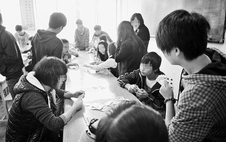 陜西通信技術學院分為中專部和大專部,很多學生初中畢業后便就讀于該校,有一部分學生是未成年人。一名女同學告訴記者:“我們學校周二、周四下午沒課,老師怕有些學生往外跑,就在班上鼓勵大家參加學生會組織的活動,以前沒有牌類游戲,從這周才開始有的。玩牌不贏錢,只定名次。”