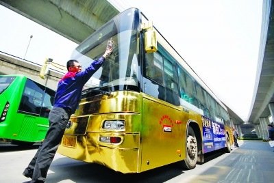 南京現“黃金公交車” 交管稱耀眼存隱患