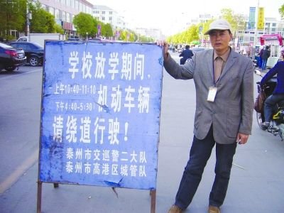 4月27日下午4點50分,記者在事發現場發現,金港路南北200米的路段被實行臨時管制。路段的一頭豎立著一塊站牌,牌子上寫著:“學校放學期間,上午10:40至11:10,下午4:40至5:30,機動車輛請繞道行駛。”落款是“泰州市交巡警二大隊和高港區城管隊”。記者了解到,被管制路段的中間是當地口岸中心小學,實行交通管制是有關部門出于對學生安全的考慮。