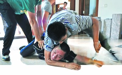 玄武警方在中山抓捕嫌疑人魏某時的緊張場面。楊維斌 攝