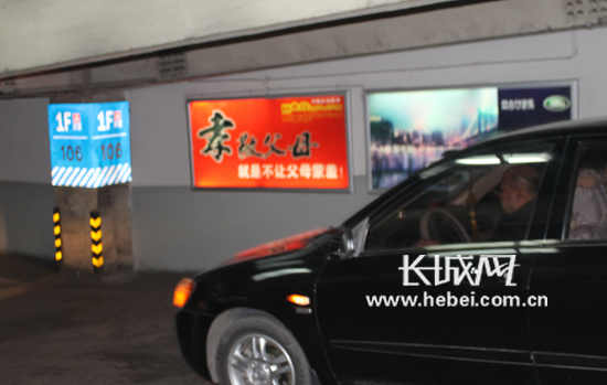孝道廣告牌掛到地下停車場(chǎng)。程行攝