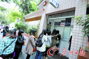昨日上午,越秀公園正門(mén)一公共廁所的女廁所門(mén)口排起了隊(duì)。記者杜江 攝