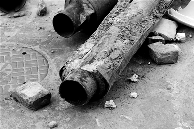 昨日下午,在事發現場,連接物華大廈和熱力主管道的支管線,已被挖出。地面上,擺放著被切割下來的舊管道,其中兩根直徑150毫米的熱力管,外面的泡沫保護層已開裂,管道表面銹跡斑斑,并出現了腐蝕的痕跡。