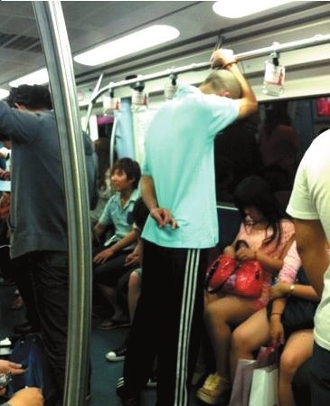 ④光頭男在地鐵內逗留。 網友供圖