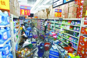 10月10日,冉家壩沃爾瑪?shù)甑膯T工在盤點(diǎn)貨架。 重慶晨報(bào)記者 胡杰 攝