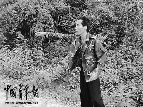 受害人符亞紅在哥哥被打死的地方向記者介紹情況。本報記者劉萬永攝