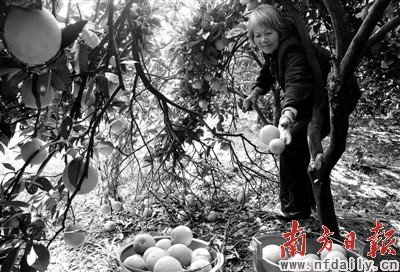 11月25日,湖南省新寧縣飛仙橋鄉戴家村65歲的鄧大媽開始開園采摘臍橙。 新華社發