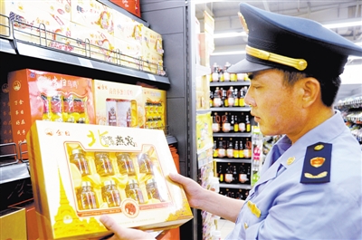 2011年8月15日,浙江省工商局抽檢發現,燕窩市場中血燕的亞硝酸鹽含量嚴重超標,含量最高達11000毫克/千克,嚴重損害了消費者合法權益。為此,國家工商行政管理總局部署全國工商系統開展流通環節燕窩市場專項檢查。圖為江蘇連云港市連云工商分局執法人員在大型超市檢查燕窩商品質量。