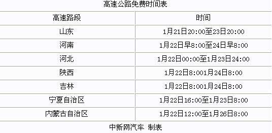 [提要] 截止目前,記者從河南、山東、河北、內(nèi)蒙古等省8省區(qū)市交通運(yùn)輸部門(mén)獲悉,春節(jié)期間,這些省份境內(nèi)的高速公路對(duì)過(guò)路車(chē)輛免收通行費(fèi)。北京、天津兩市境內(nèi)的高速公路未獲得免費(fèi)通知。