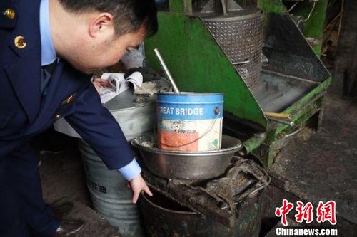 中新網紹興4月19日電 (記者 童靜宜 實習生 郁麗娟 通訊員連文軍)4月18日上午,浙江省上虞市工商局聯合公安部門查封一處私煉疑似新型地溝油的加工點,該加工點利用收購來的動物內臟等廢棄物加工新型地溝油。
