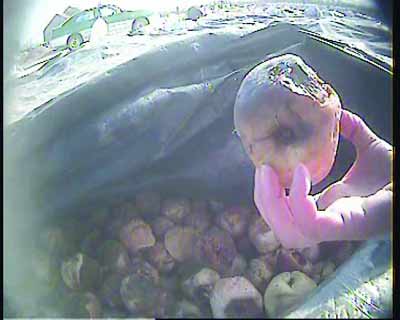 老板們還說,這些晾曬的桃肉都是經過腌漬加工過的。而腌漬桃肉的地方就是路邊的這些露天水泥池。記者在路邊看到:一個大水泥池里泡著5萬斤左右的桃肉,旁邊垃圾遍地,污水橫流,骯臟不堪。掀開蓋著水泥池的塑料膜,里面浸泡著的桃肉,有很多已經腐爛變質。
