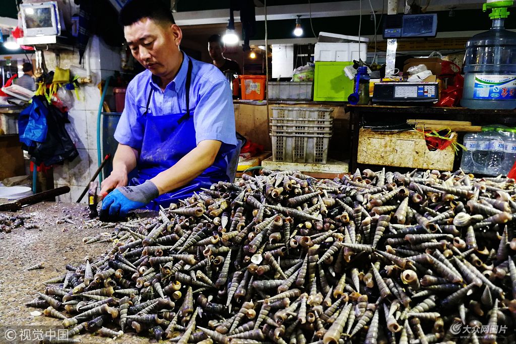 018年6月26日,山東青島一海鮮市場,豐富多彩的海鮮吸引了眾多市民和游客前來購買。