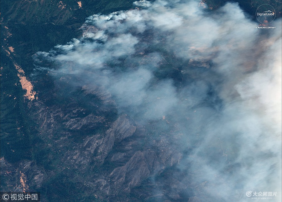 美國北加州野火規模突破歷史紀錄 衛星圖顯示濃煙直沖上天 (/)