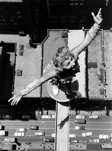 在國外一個論壇上看到這幾張老照片時,被震憾了。有頭暈目眩的感覺,同時也非常佩服高樓上的表演者和攝影師。可惜,目前我只知道這些照片大約是1955年在芝加哥拍攝的,不知道表演者和攝影師姓甚名誰。