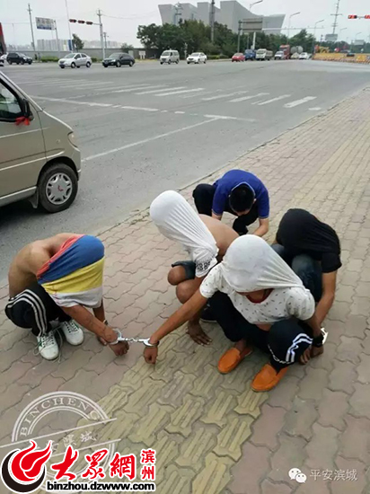 辦案民警迅速驅車順線追蹤至博興縣柳橋鎮,當日16時許,民警發現4名嫌疑人在柳橋廣場搭乘一輛面包車離開,遂駕車跟蹤尋找時機實施抓捕。17時許,嫌疑車輛行駛至東營市南二路路口等紅燈時,民警迅速逼停嫌疑車輛,將車上的4名嫌疑人抓獲。經審訊,4人如實供述了8月6日凌晨竄至濱城區爬窗入室盜竊的犯罪事實。