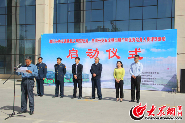 大眾網濱州4月18日訊(記者 王亞明)18日上午,濱州市城區公交系統文明駕駛員、文明出租車、文明公交車和優秀站務員評選活動正式啟動,在接下來的6個月的時間內,將通過公司內部推選、網絡投票等方式,評選出100名文明駕駛員、100輛文明公交車和文明出租車、20名優秀站務員,通過他們的引領、示范,形成全社會共創交通文明的氛圍。