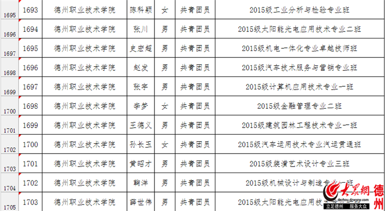 近日,山東省教育廳公布了2016年度高等學(xué)校優(yōu)秀學(xué)生、優(yōu)秀學(xué)生干部和先進(jìn)班集體評選結(jié)果,大眾網(wǎng)記者經(jīng)梳理發(fā)現(xiàn),德州學(xué)院、德州科技職業(yè)學(xué)院、德州職業(yè)技術(shù)...