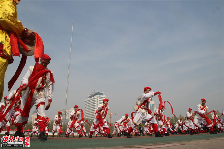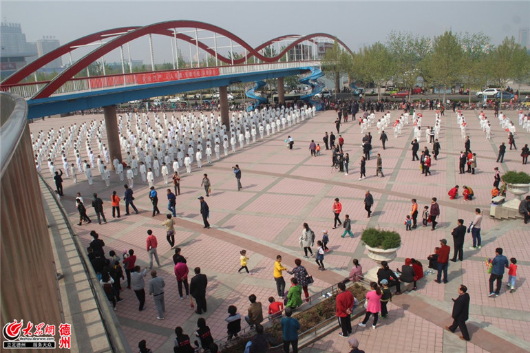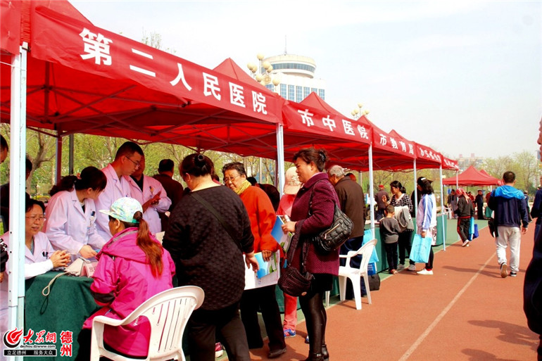 4月15日上午9點半,德州市中心廣場上響起了一陣鑼鼓吶喊聲,山東省暨德州市2017年健康中國行——合理膳食宣傳教育活動啟動儀式在這里舉行,來自中國人口宣教中心、中國人口出版社、山東省衛生計生委、山東省疾控中心、德州市人民政府及市愛衛辦的領導,與全市1500余名學生、醫務人員和市民們集聚一堂,助推合理膳食的健康理念。隨后,以太極拳、功夫扇子為代表的群眾健康運動紛紛開展。現場人氣爆棚,聲浪一陣高過一陣。