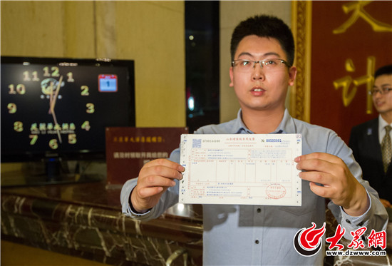 消費者冷先生展示德州市首張生活服務業增值稅發票