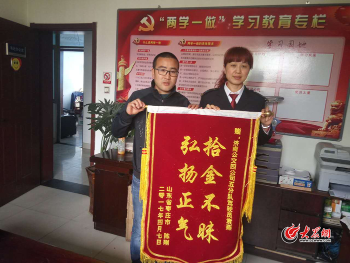 大眾網4月7日訊(記者 張帆)4月1日,大眾網刊發了《誰在公交車上丟錢包了?快來認領》一文(http://jinan.dzwww.com/qcxw/201704/t20170401_15713228.htm),幫助K98路公交車車隊撿到的錢包尋找主人。今天,失主陳剛在看到報道后聯系到車隊,帶著錦旗以及對大眾網的感激感謝K98路駕駛員袁燕拾金不昧。