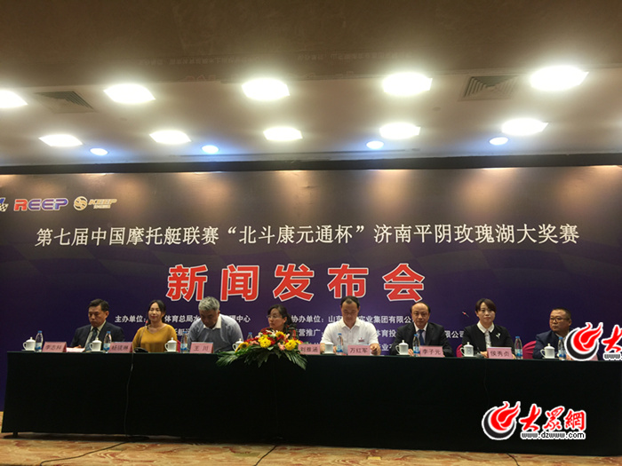 第七屆中國(guó)摩托艇聯(lián)賽“北斗康元通杯”濟(jì)南平陰玫瑰湖大獎(jiǎng)賽新聞發(fā)布會(huì)在舜耕山莊舉行
