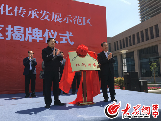 山東省委宣傳部副部長劉致福、濟寧市委副書記石光亮共同為“國家優秀傳統文化傳承發展示范區雙創園區”揭牌。