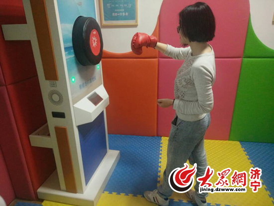 工作人員進(jìn)行心理發(fā)泄設(shè)備的演示