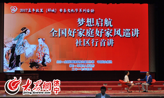 大眾網濟寧4月27日訊(記者 孔令俏 劉寶才 通訊員 周廣磊 李呈龍)4月26日,“夢想啟航——中國好家庭好家風巡講”社區行首講活動在鄒城舉行。