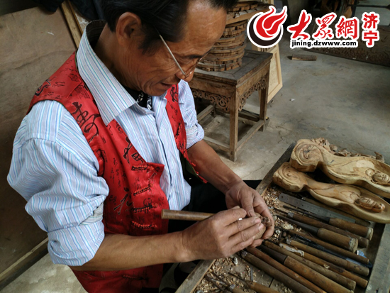 郭宗磊告訴記者,郭氏木雕起源于明朝初期,從郭氏始祖由山西省洪桐縣遷入汶上縣以來,木雕技藝就在郭氏族人中相傳,“爺爺把這門手藝傳給了父親,父親又傳給了我。”