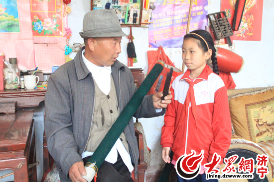 讓他十分欣慰的是,小孫女畢藝濛在他的耳濡目染下漸漸對漁鼓產(chǎn)生了濃厚的興趣,4歲的時候就和爺爺一起登臺演出。“這個孩子天生就不怕生人,演出的時候聲情并茂,很惹人喜愛。”目前,爺孫倆在全省各地參加的比賽獲獎無數(shù)。畢德貞說,雖然在60年的演藝生涯中也教過5、6個徒弟,但都因誤工費事,不愿意學(xué)下去,就連他的兒子也怕影響收入棄藝從工。2008年,“山東漁鼓”被列為省級非物質(zhì)文化保護項目后,畢德貞非常高興,他希望通過自己的努力能召集更多的傳承人,讓漁鼓民間曲藝發(fā)揚光大。