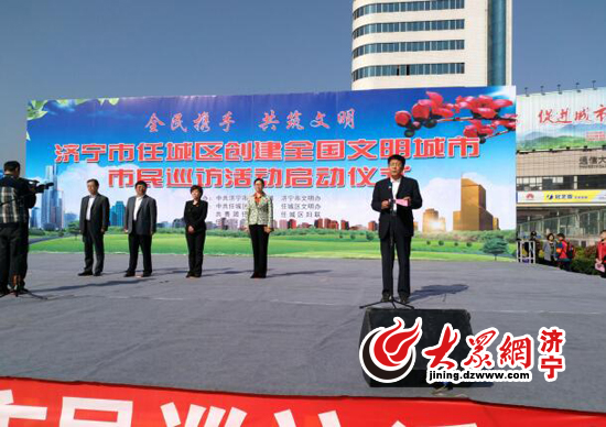 濟寧市任城區“全民攜手 共筑文明”市民文明巡防在行動活動由中共濟寧市委宣傳部、濟寧市文明辦主辦。任城區宣傳部、文明辦、區委、婦聯、文廣新局共同承辦。儀式上宣讀了濟寧創建文明城市倡議書。