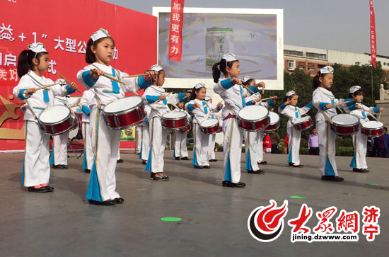 活動一開始,濟寧市任城實驗幼兒園鼓樂隊的小朋友首先為現場市民帶來一段表演。年齡都在四五歲左右的小朋友在一名指揮老師的帶領下,有模有樣的敲擊著背在身上的小鼓,還不時地變換隊形,精彩的表演引得現場掌聲連連。