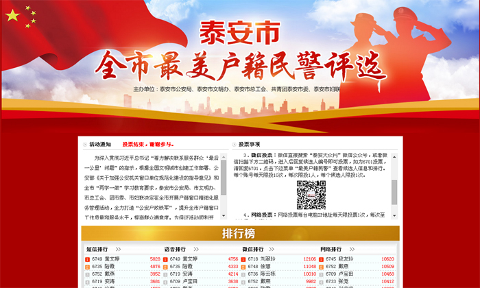 “全市最美戶籍民警”投票結束 獲68萬泰安網友加油點贊