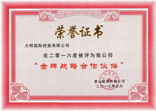大明從客戶的需求出發(fā),依托齊全的鋼種資源、先進(jìn)的加工設(shè)備、成熟的“一站式”服務(wù)模式,受到了泰山恒信有限公司的青睞。在2017年初,泰山恒信有限公司向大明國際頒發(fā)了“金牌戰(zhàn)略合作伙伴”的證書,以表示對(duì)大明高精度產(chǎn)品和及時(shí)、周到服務(wù)的認(rèn)可。未來,隨著大明泰安加工中心項(xiàng)目的建成,必將推動(dòng)雙方的合作進(jìn)入更廣、更深的層次。