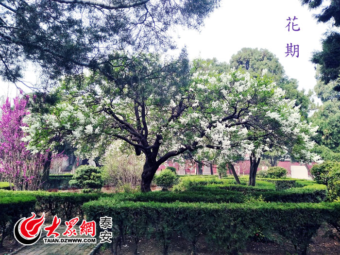 泰山廣場(chǎng):杏花、爬藤月季;西側(cè)御碑園有連翹、榆葉梅和紫葉李。