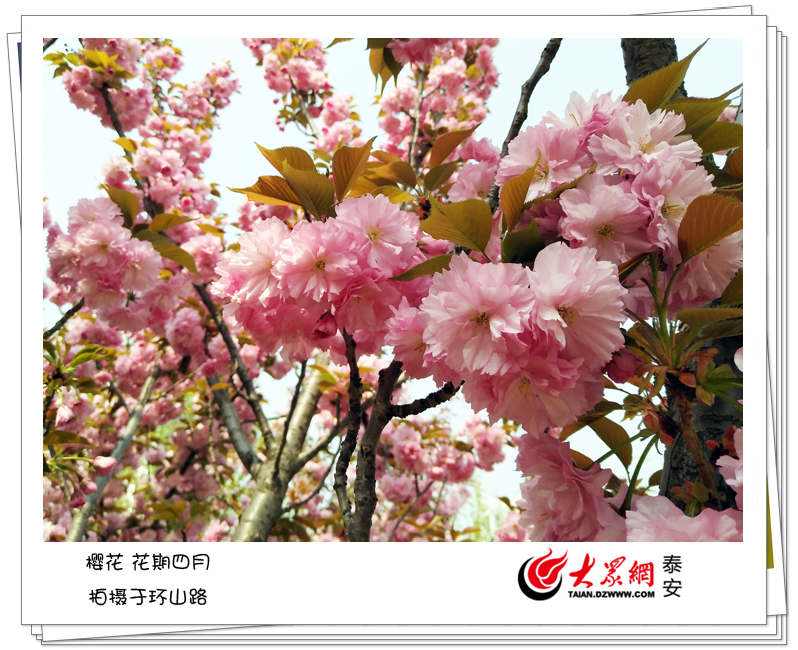 環(huán)山路沿線,還有櫻桃園附近落英如雪的櫻桃花,梅園的薔薇、紫葉李,魯班公園北側(cè)一片的杏花。一入三月,這條環(huán)繞泰山腳下的交通要道就沉浸在醉人的春光里,路人往返,熙攘喧囂,唯有花不語(yǔ)。