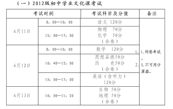2012級(jí)初中學(xué)業(yè)文化課考試