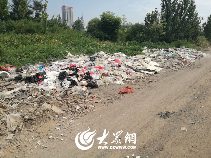 劉大爺說,這塊地荒不久,就開始有車?yán)^來傾倒,你看這路上的車印子,都是車壓出來的。而這些車大都是鎮(zhèn)里、城區(qū)的垃圾車,還有一些廠子里的車也過來倒這里。