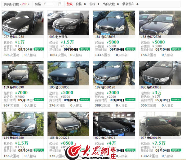 據了解,徐州華信拍賣有限公司受棗莊市市直機關事務管理局委托于2016年9月4日上午9點至晚上20點,在淘寶網上公開拍賣車輛200輛,拍賣分四批進行,每批50輛。
