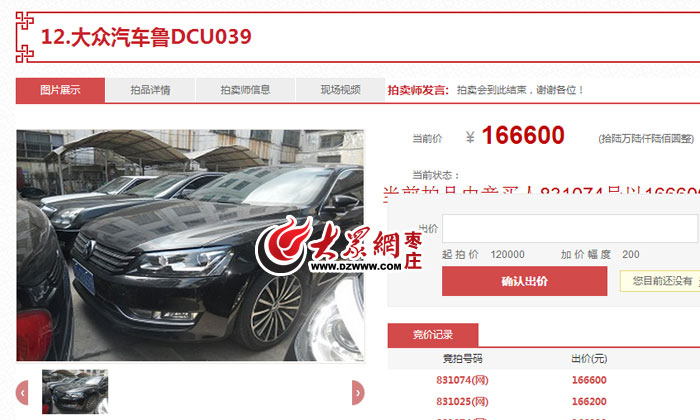上午9時30分,滕州32輛公車準時網上公開拍賣。大眾網記者從網上看到,競價最激烈的是12號大眾汽車,車牌魯DCU039,牌照日期是2013年1月22日,12萬元起拍。經過149輪競價,最后以16.66萬元成交,溢價4.66萬元。起拍價最高的17號魯OD9099陸地巡洋艦汽車,經過68輪競價,最終以20.65萬成交,溢價6.15萬元。