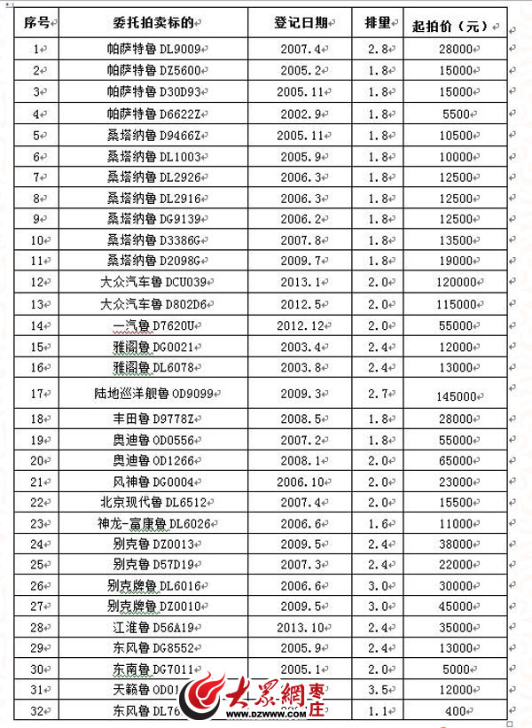 滕州公車網上拍賣:31輛成交 成交額137.22萬元