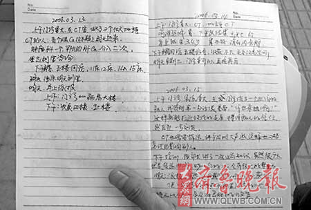 2006年3月10日:“今天門診量小,去病房大樓轉了兩圈,收獲不大,但談了四個……下午病房中心,因碰上兩回胡醫生,他不讓我們派報……”