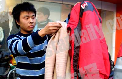 劉先生回憶,本月11日下午,他和同事在大興黃村動感96商場的安踏專賣店選購了一款395元的(折后價格)紅色羽絨服,第二天一早他就穿著新衣服上班去了。12日晚,劉先生回到單位宿舍后脫下羽絨服,卻發(fā)現(xiàn)穿在羽絨服里面的襯衣被羽絨服的紅色里子染成了紅色。“買安踏的羽絨服,就是覺得品牌的產(chǎn)品應(yīng)該不會出現(xiàn)什么問題,可是竟然出現(xiàn)這種情況。”劉先生說,自己對于安踏羽絨服出現(xiàn)掉色的情況非常失望。