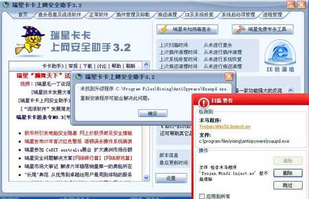 5月19日上午開始,許多卡卡用戶向瑞星公司求助:用卡巴斯基殺毒軟件殺毒后,瑞星卡卡上網安全助手無法正常升級。