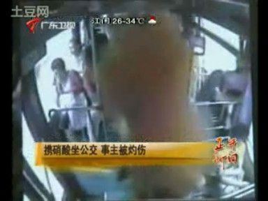 監控實拍公交車上乘客攜帶的硝酸爆噴