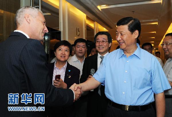 8月23日,中共中央政治局常委、國家副主席習近平在北京調研。這是習近平在北京金融街進行調研時,與在這里工作的外籍人士親切交談。 新華社記者饒愛民攝