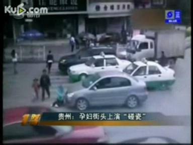 監(jiān)控實拍:看孕婦如何車前“碰瓷”