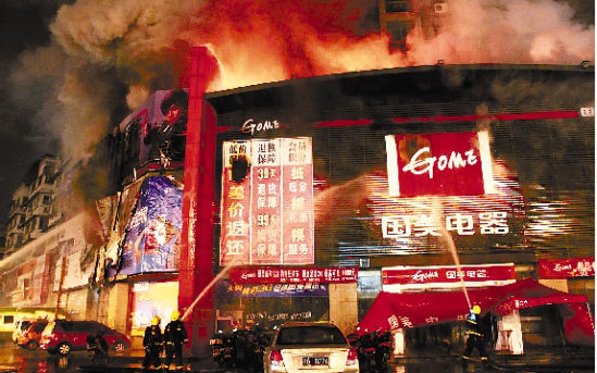 火災發生在金華市區的一幢商住混合樓內,起火的國美電器賣場占據了下面三層,上面則是一些公司和住戶。